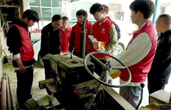 志愿者们携带专业维修工具,为农用拖拉机、灌溉设备等各类小型农机开展全方位免费检修、深度清洁保养,细心排查螺丝松动、线路老化、零件磨损等故障隐患,现场修复各类农机问题。在农机检修的同时,志愿者们化身农技宣讲员,用通俗易懂的语言为农户普及农机安全操作规范、常见故障快速排查、日常防锈养护、长期存放技巧等实用知识,面对面答疑解惑,手把手传授实操方法,打通农机便民服务 “最后一公里”。